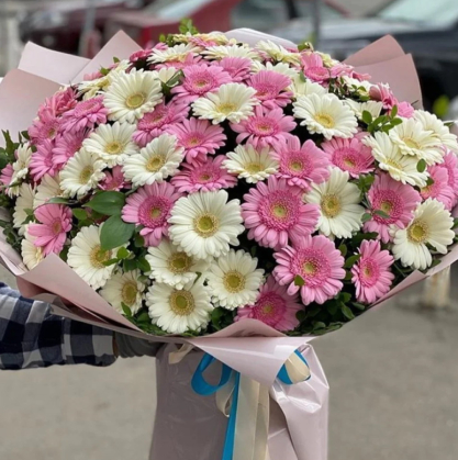 Букет из 101 белой и розовой герберой | Купить в Бирмингеме